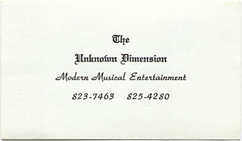 Business card for The Unknown Dimension. I'm not sure who came up with